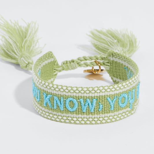 This is so happy embroidered tassel bracelet