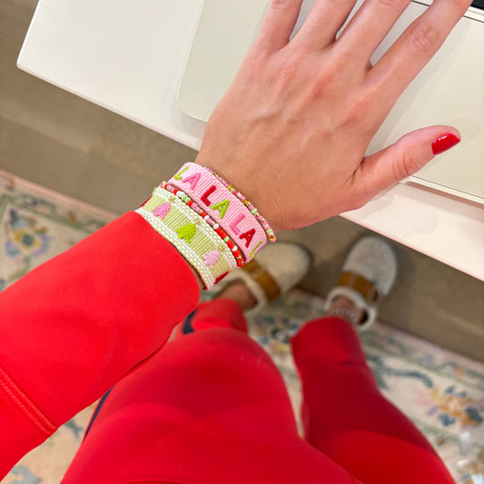 Jolly as hell bracelet stack ( bracelet bundle ) with red dainty diamond bracelet