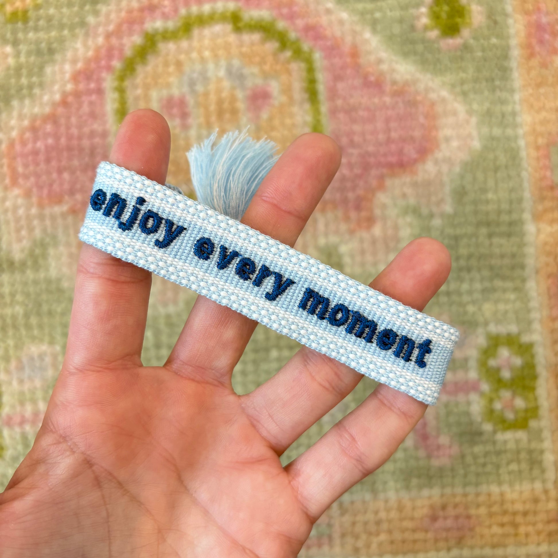 Enjoy every moment embrodiered tassel bracelet