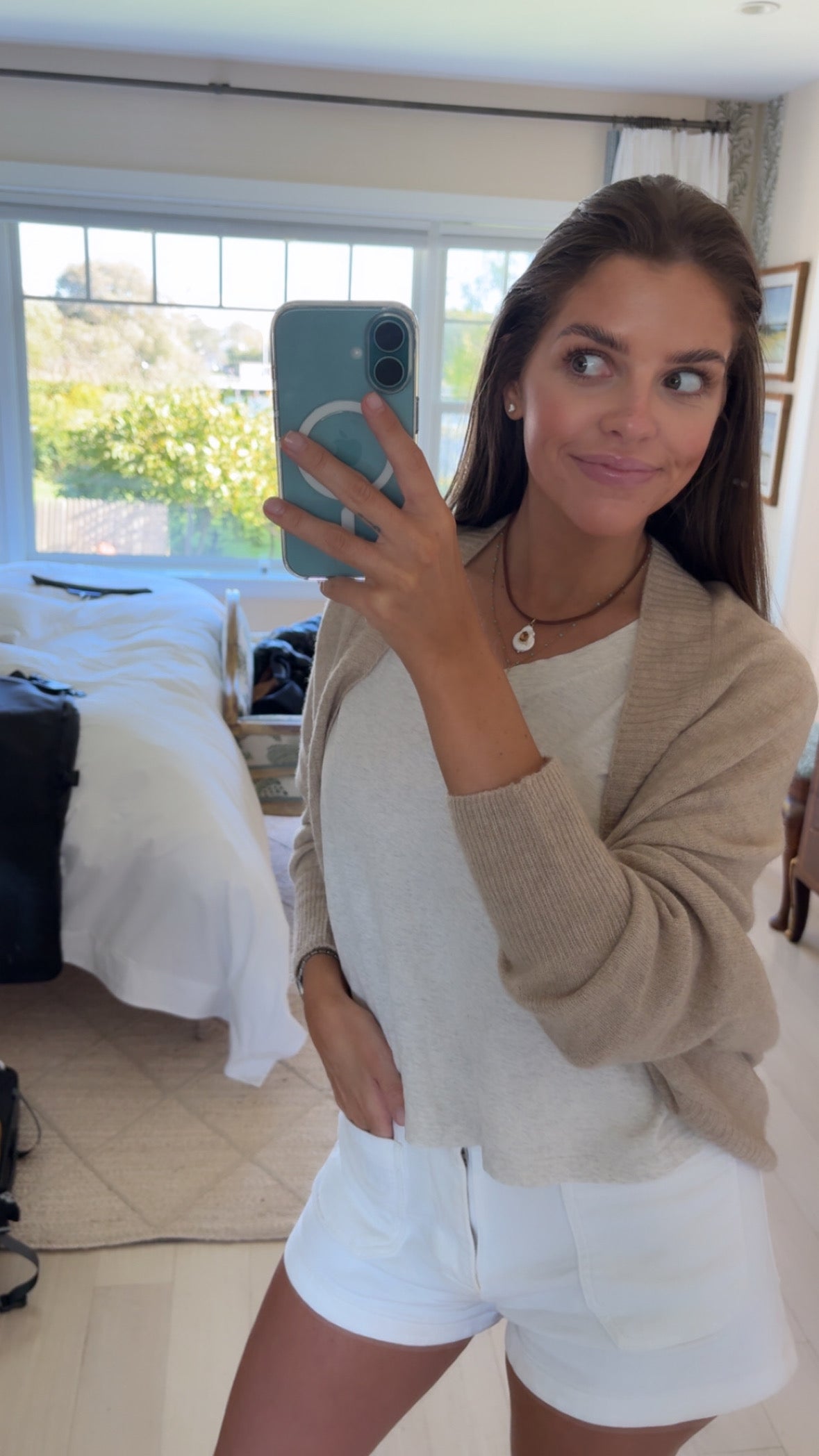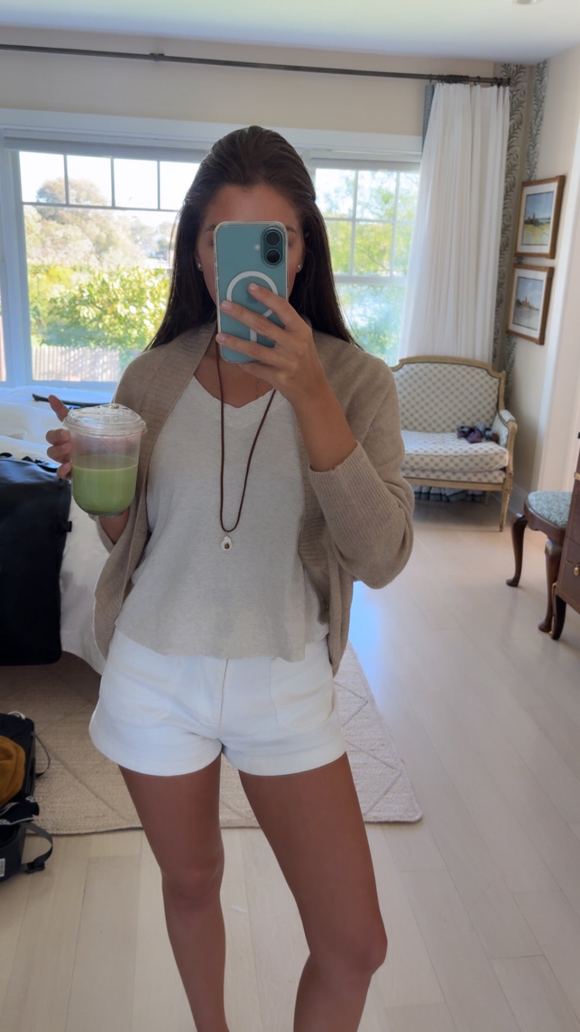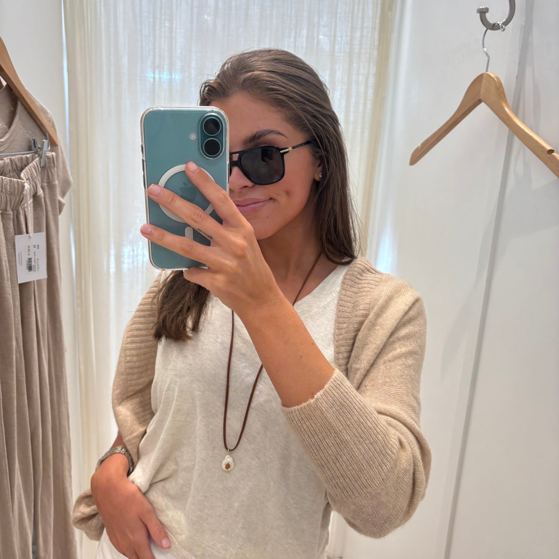 Freshwater pearl necklace with green stone