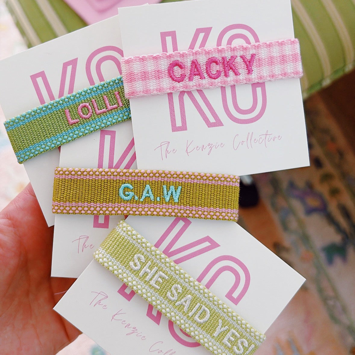 The Kenzie Collective Custom Embroidered Tassel Bracelet PERSONALIZED